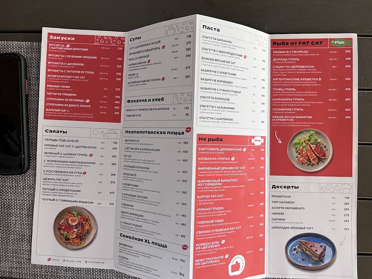 ГОРОДСКОЕ КАФЕ 'FAT CAT' Menu